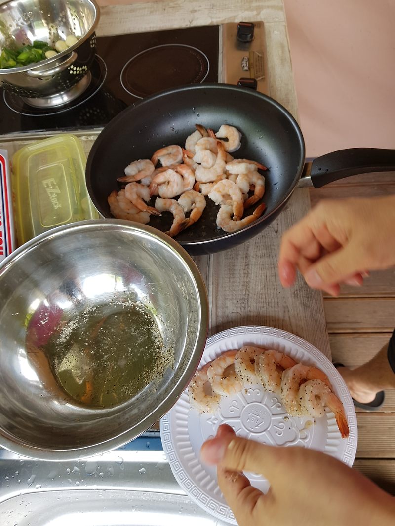 캠핑 요리하기 갈릭새우감바스알하이오 예준파파 일상육아 스토리