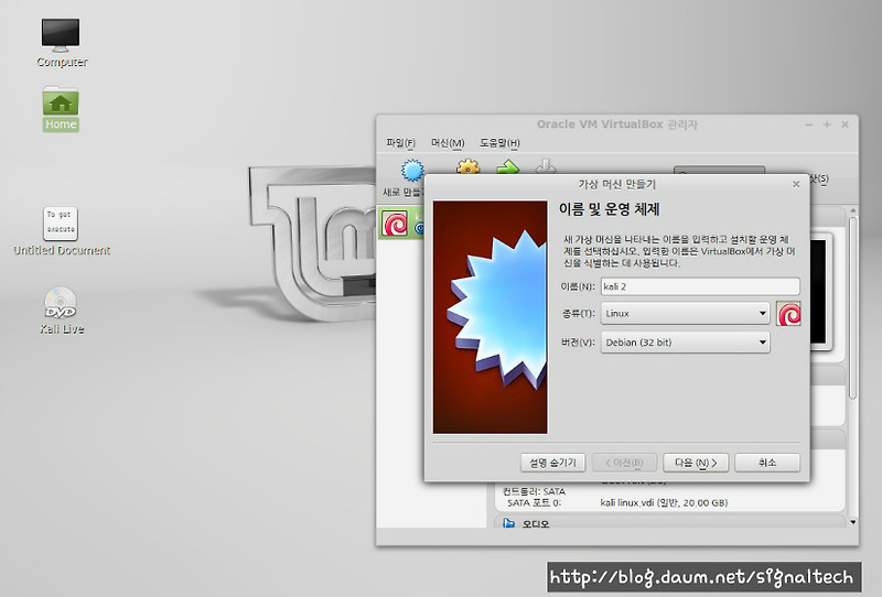 리눅스 민트17 Virtualbox에 Kali Linux1 0 7설치하다