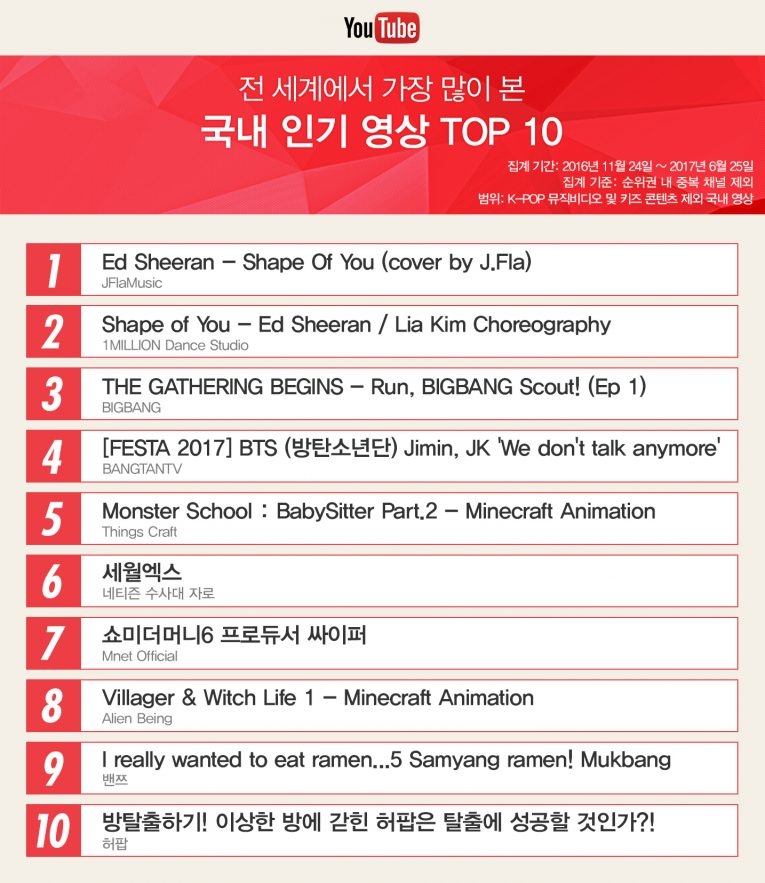 유튜브 2017년 상반기 채널 순위 발표 키즈 음악분야 채널 급성장