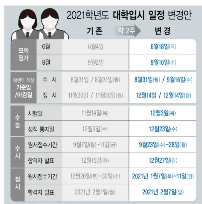 수시 정시 생기부 작성 연기 등 코로나19로 2021학년 대입전형 일정 변경 경기청소년신문
