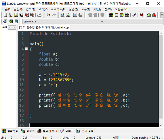실수 형식 Double Float 표현과 출력 언제나 C언어 언제나 휴일