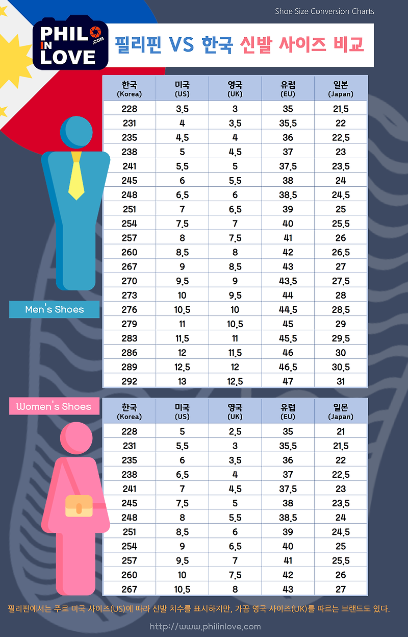 필리핀 생활 미국사이즈 영국사이즈 필리핀 신발사이즈 보는 방법